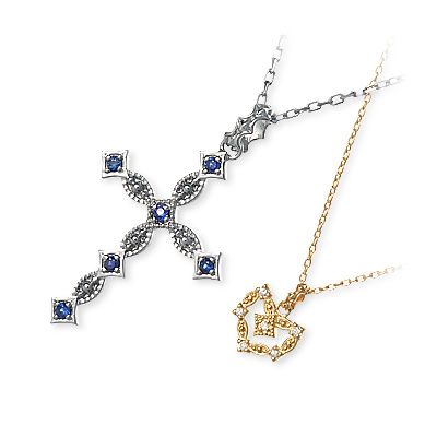 胸元にひと際目立つ、優美な表情のクロス。
