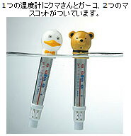 クマさんとガーコの2つのマスコットが湯温計に付属、楽しいきせかえ動物湯温計です。