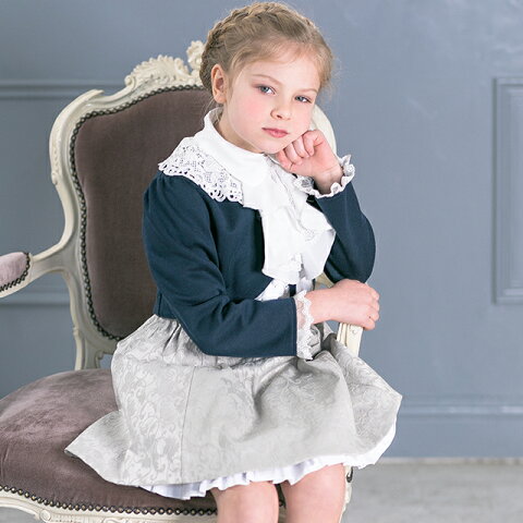 コーディネートが楽しめる セパレートセットアップ Full Setup 全てを着用した際のスタイル Furill Off Style フリルのみを外した際のスタイル Bolero Off ボレロ着用無しスタイル Blouse ブラウスのみのスタイル Material 素材 ボレロ:プレミアムコットンダンボール 付け襟/ ケミカルモチーフレース ブラウス / リヨセル 付けフリル / エアリージョゼット、チュールレース スカート/ストレッチジャガード ペチコート/綿・ハードチュール 付け襟リボンボレロ サイズ(cm) 110 120 130 着丈 25/29 28/32 × 身幅 36 38 × 肩幅 26.5 29.5 × 袖丈 38 42 × 裾幅 38 40 × ペチコート付きジャガードスカート サイズ(cm) 110 120 130 スカート丈 28.5 31.5 × ウエスト幅 23 24 × 裾幅 96 100 × ベルト幅 3.5 3.5 × 付けフリル&ブラウス サイズ(cm) 110 120 130 着丈 43 46 × 身幅 34 36 × 肩幅 26 29 × 袖丈 15 16 × 裾幅 37 39 × ペチコート サイズ(cm) 110 120 130 スカート丈 32.5 35.5 × ウエスト幅 22.5 23.5 × 裾幅 96 100 × ベルト幅 2 2 ×