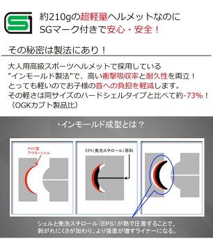 帽体の成型は大人用高級スポーツヘルメットで採用している『インモールド製法』によるもので、軽量で高い衝撃吸収性と耐久性を両立。