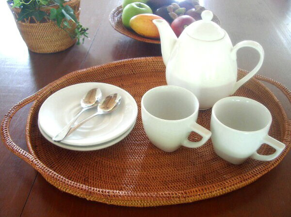 ↓ 持ち手が付いたシンプルなアタの楕円トレー。